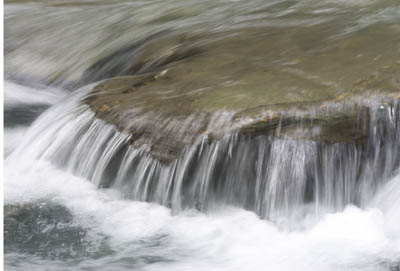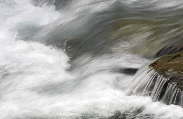 ausgewaschen. Je länger man belichtet, je mehr wandert der Schwerpunkt dahin, wo die weißen Strudel sind. Digital ist es ganz leicht - und kostenlos - die optimale Belichtungszeit zu finden, die man nicht generell festlegen kann, weil sie von der Fließgeschwindigkeit abhängt. 1. Stufe: Eine Belichtungsreihe, um die zur Fließgeschwindigkeit optimale Verschlusszeit zu finden. 2. Stufe: Den idealen Ausschnitt suchen, abhängig vom Schwerpunkt im Bild, in Abhängigkeit von der Länge der Belichtung. 3. Stufe: Die passende Blende zu finden über eine Belichtungsreihe, weil Wasser ja oft heller ist als der mittlere Grauwert und Wasser immer 'heller' wird, je länger die Belichtungszeit ist. 4. Stufe: Die Ausschnittmuster und die 20 anderen (kostenlosen) Testaufnahmen löschen und das wirkliche Foto machen. Alles 'easy going' - eben digital. Hier unten einige der Versuche, bis ich das obige Bild 'fand', mich herangetastet oder es herausgearbeitet hatte. Analog hätte ich das Bild nicht verwirklichen können, weil die Vorarbeiten, die zu dem Ergebnis führten, mit Diafilm nicht möglich gewesen wären.