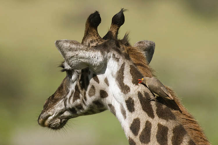 Red-billed oxpecker & Massai giraffe