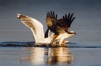 Diesen Moment nutzte der Fischadler, um der Möwe die Beute zu