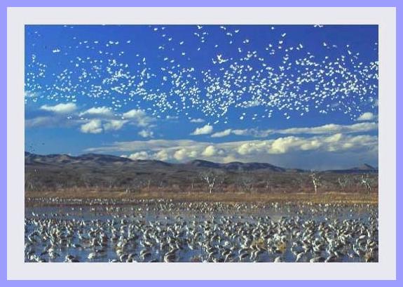 Ein Bild sagt mehr als 1.000 Worte 1941 überwinterten von den damals sehr gefährdeten Kanada-Kranichen ganze 17 Exemplare im Bosco del Apache Naturreservat, 80 Meilen südlich von Albuquerque im US-Bundesstaat New Mexiko. Heute sind es über 20.000, die dort von Mitte November bis Mitte Februar anzutreffen sind, begleitet von genauso vielen Enten und etwa 50.000 Schneegänsen. Es ist ein sehr emotionales Schauspiel, wenn hunderte von Kranichen und Gänsen in nur 30 Meter Entfernung an vielen beobachtenden Naturfreunden vorbeiziehen, und auf den Übernachtungsplätzen kurz vor der Dunkelheit einfallen. Rechnen sie übrigens nicht damit, die Kraniche am Morgen vor rotem Himmel im Frühdunst fotografieren zu können, wie auf dem berühmten Bild von Arthur Morris zu sehen ist. Er war in sechs Jahren an 100 Tagen jeden Morgen um 6.00 Uhr dort und hat diese Atmosphäre dabei nur zwei Mal erlebt. Die Chancen sind also 1:50. Tut mir leid Frank.....