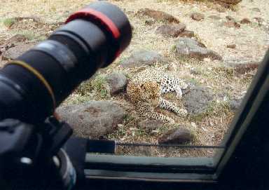 Dr. Horst Hagen, einer der besten Kenner der ostafrikanischen Tierwelt, der schon viele Bücher über diese faszinierende Welt schrieb, und den man oft in Afrika trifft. Hier fotografiert er im Augenblick 'meine' Leopardin.