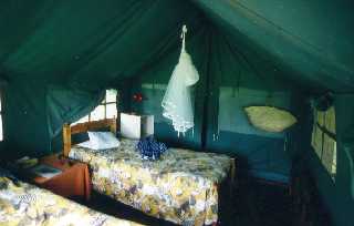 Zelt im Mara-River Camp. Über dem Bett hängt mein privates