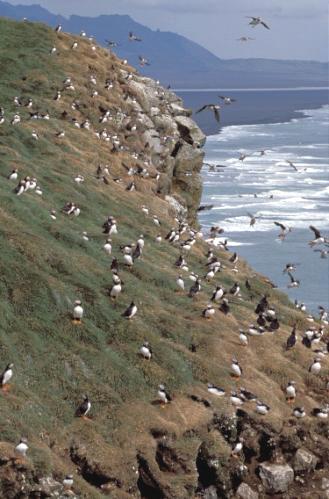 300.000 von den vielen Millionen Puffins leben etwa 350 km von Reykjavik entfernt auf den Kliffs des Ingolfschofdi Highland. Das sind zwar nicht sonderlich viel, verglichen mit der Gesamtpopulation, aber für ein paar brauchbare Fotos sollte es doch schon reichen.