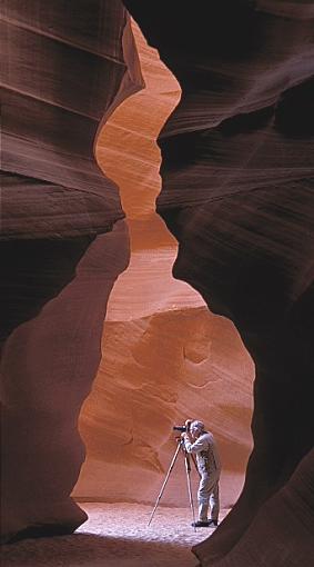 Fritz Pölking Der Mann der keine Ahnung hatte.. Im Dezember 2002 fotografierte ich eine Woche lang die Naturbogen im Arches Nationalpark in Utah - mit Moab als Standquartier, als mir ein auch dort fotografierender Kollege erzählte, dass die berühmten Antelope Canyon’s nur 5 Autostunden entfernt liegen, und ein Besuch sich immer lohnen würde. Nachdem ich nun sieben Tage lang Bogen fotografiert hatte dachte ich mir, dass etwas Abwechslung nicht schaden könnte, und machte einen Abstecher nach Page City in Arizona. Die beiden Antelope Canyon‘s liegen direkt bei der Stadt und sind leicht zu erreichen und zu fotografieren. Es gibt zwar inzwischen mehr als genug Fotos von diesen Canyon’s, aber es macht nach wie vor einen Riesenspass, dort Bilder aufzunehmen.