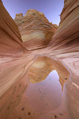 So wie im linken Foto sieht es am Eingang zur Wave in Arizona wirklich aus.