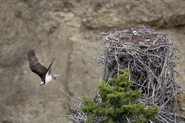 Yellowstone NP, Mai, Fischadlerhorst, 4.0/500 mm, 2x Konverter, Stativ.