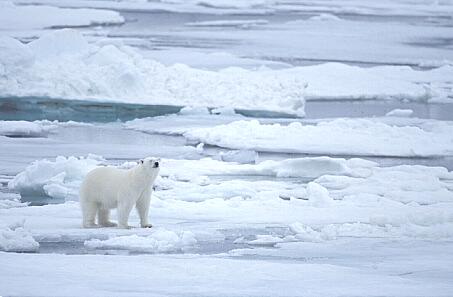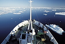 10. Tag. Bis zum Frühstück lag das Schiff eingebettet zwischen Eisfeldern. Dann machten wir uns wieder auf die Suche nach Eisbären, möglichst mit einer eben erbeuteten Robbe. Gegen 10.00 Uhr fanden wir auch einen und konnten ihn etwa 2 Stunden lang fotografieren. Teilweise mit schönem Spiegelbild im Wasser, im Hochformat und formatfüllend mit 500 mm bei strahlendem Sonnenschein. Am Nachmittag – auf der Fahrt zu nordischen Blumenfeldern - hielt Dr. Wayne Lynch einen Diavotrag über die Vogelwelt der Arktis,